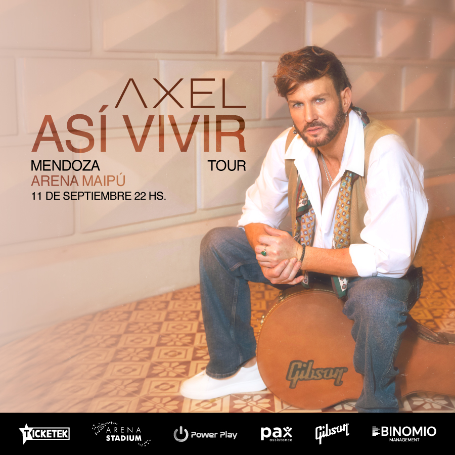Axel anuncia su nueva gira Así Vivir Tour y confirma su show en Mendoza, el próximo 11 de septiembre, en el Arena Maipú Teatro. Las entradas están disponibles en Ticketek.com.ar y boletería del Arena (solo en efectivo).