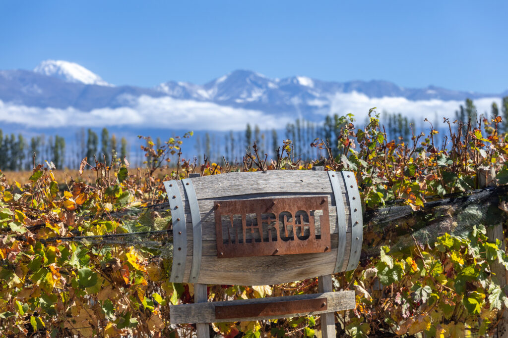 El espacio fue concebido con una marcada impronta vitivinícola: el mobiliario está realizado a partir de barricas de roble y sus amplios ventanales ofrecen vistas directas a los viñedos y a la Cordillera de los Andes.