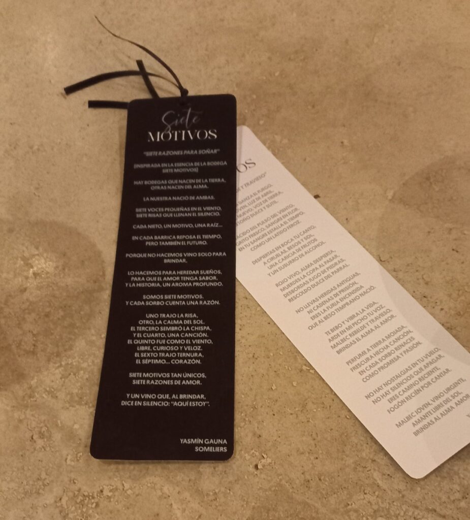 La sommelier de Bodega Siete Motivos fue la encargada de poner conocimiento y voz a la noche, con la lectura de poemas en honor a esta bebida y música de su autoría que deleitó a los presentes. Uno de los poemas escuchados fue “Siete razones para soñar”, inspirado en la esencia de la bodega: