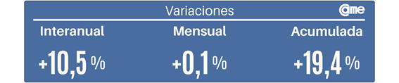 En la comparación mensual desestacionalizada se produjo un aumento del +0,1%, acumulando +19,4% en el primer trimestre del año.
