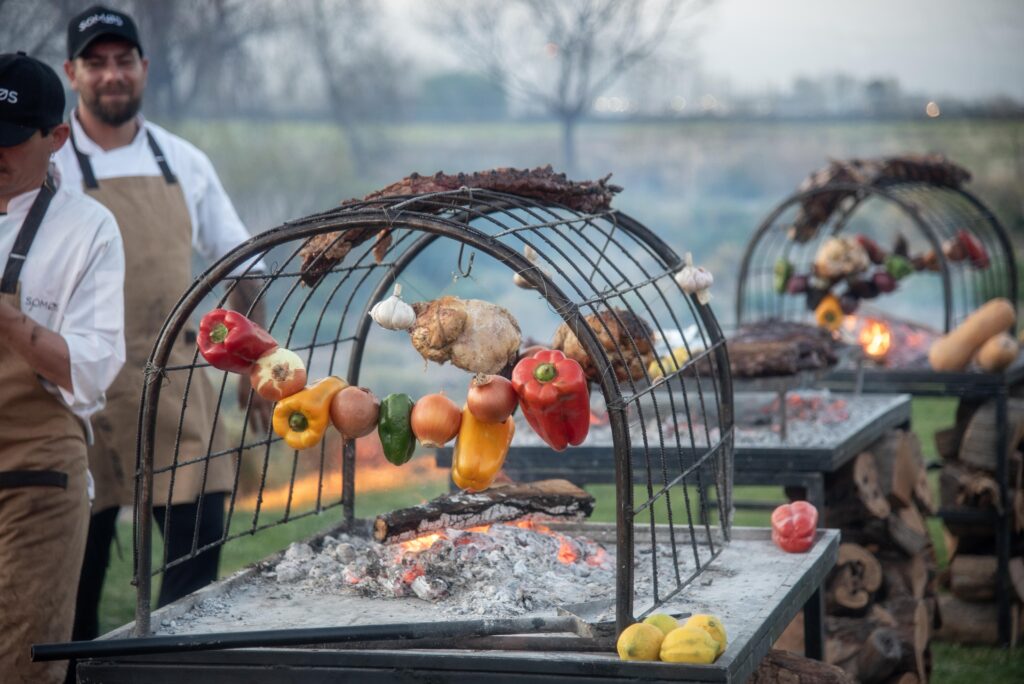 • Coctel de fuegos con parrilla en vivo: sándwiches de ojo de bife, cortes de cerdo en ciabattas de masa madre y vegetales asados.